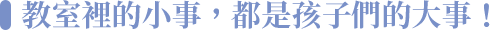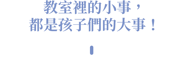 在教室裡的小事,都要當作大事處理。孩子當眾被吼不處理,那麼所有人都可以吼他,只要不喜歡別人就能大吼;動手推人不處理,肢體上的糾紛就會不斷發生;不知道怎樣跟同學互動相處,就會常常跟同學產生摩擦,影響人際關係。雖然處理這些小事要花很多時間,但是觀念建立了,孩子之間的摩擦就會越來越少。