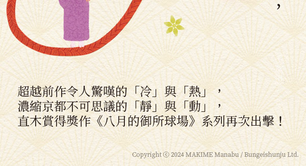 明知「萬城目流」就是充滿奇想、無法預測卻肯定教人引頸期盼,但在閱讀《六月的振振毬杖》時,我還是忍不住(周而復始地)上演疑惑、驚嘆、噗哧發笑三部曲,彷彿用上了哆啦A夢「時光機+任意門+如果電話亭」三合一道具,穿梭在文學的與戰國的日本歷史中,也徜徉在浪漫優雅的京都懷抱裡。一短篇一中篇故事延續《八月的御所球場》敘事觀,還多了點推理味,「本能寺之變」裡諸多謎團要就此破解嗎?我是壓根沒想過會這樣神展開啦……